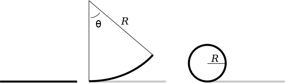 Avec un angle égal à θ=0° le système n'est pas courbé (il n'est pas du tout transformé), tandis que θ=360° revient à enrouler le système pour former un tube ou un cylindre (voir la Fig. 1). L'axe du tube est aligné avec l'<axe> donné, et son rayon est R=(180 L)/(2πθ), où L est la longueur de la boîte dans la <direction> donnée. Prenez garde que plus l'angle θ est large, plus le rayon est petit. Pour les angles très larges il est recommandé que le système soit pseudo-2D, c'est-à-dire très fin dans le plan formé par la <direction> et l'<axe>.